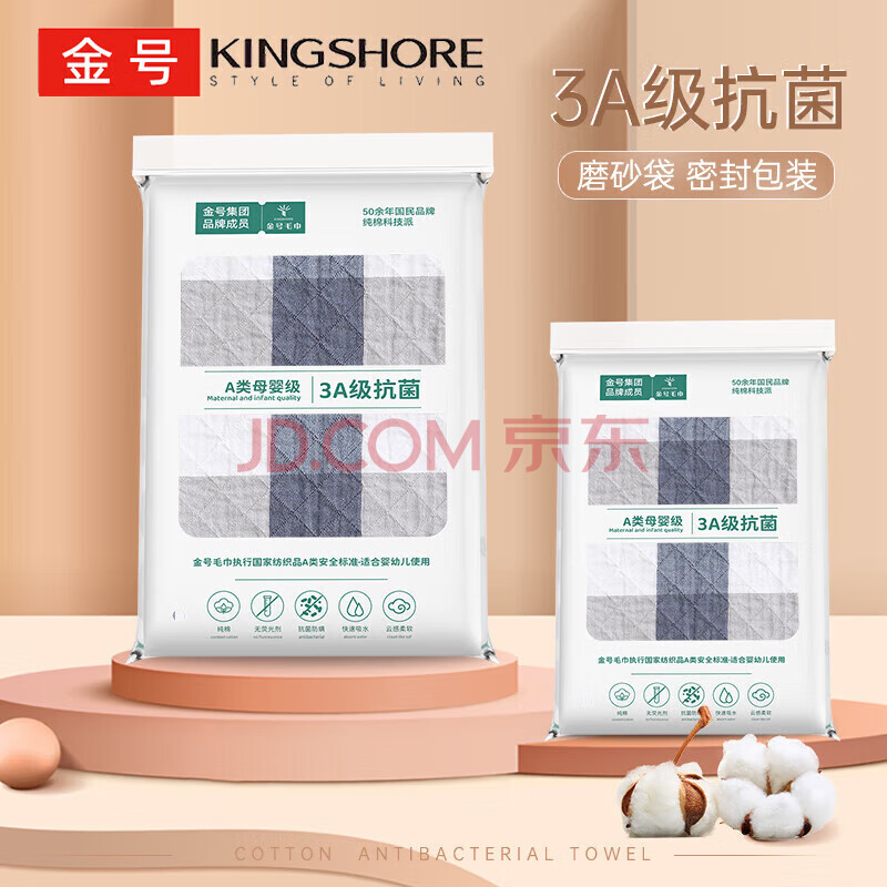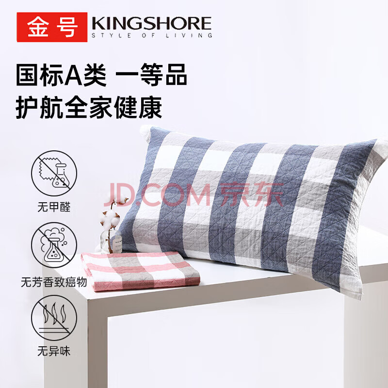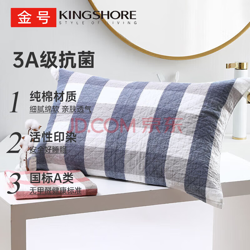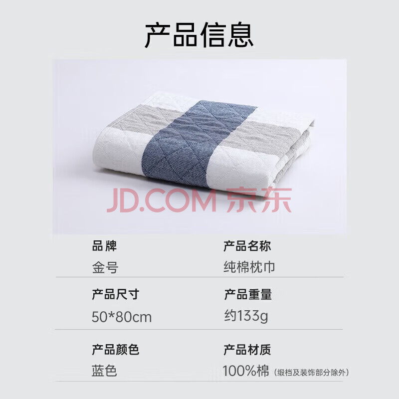 商品相册:金号纯棉枕巾 3A抗菌三层全棉枕头巾透气吸汗柔软蓝单条52*78cm 133G第