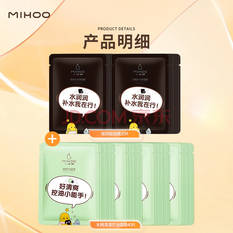 商品相册:小迷糊补水控油面膜组合60片玻尿酸补水保湿护肤男女士护肤品秋冬季第