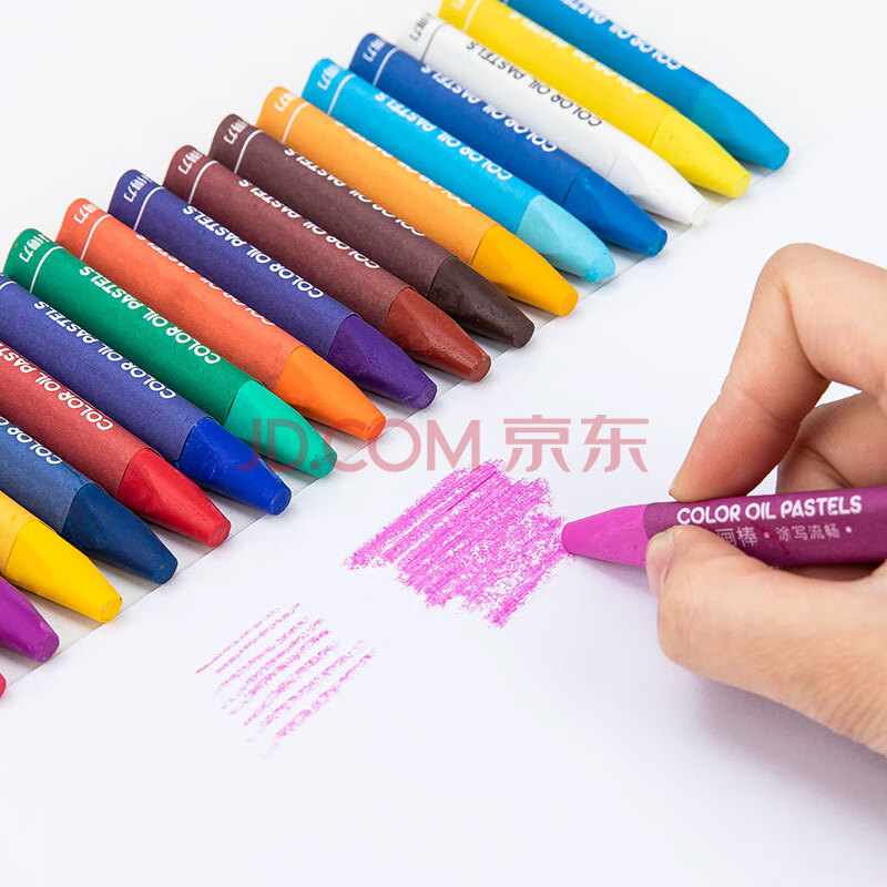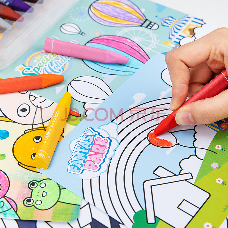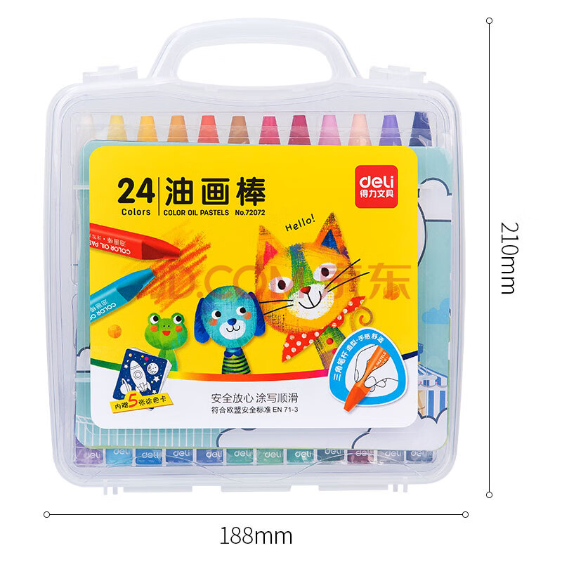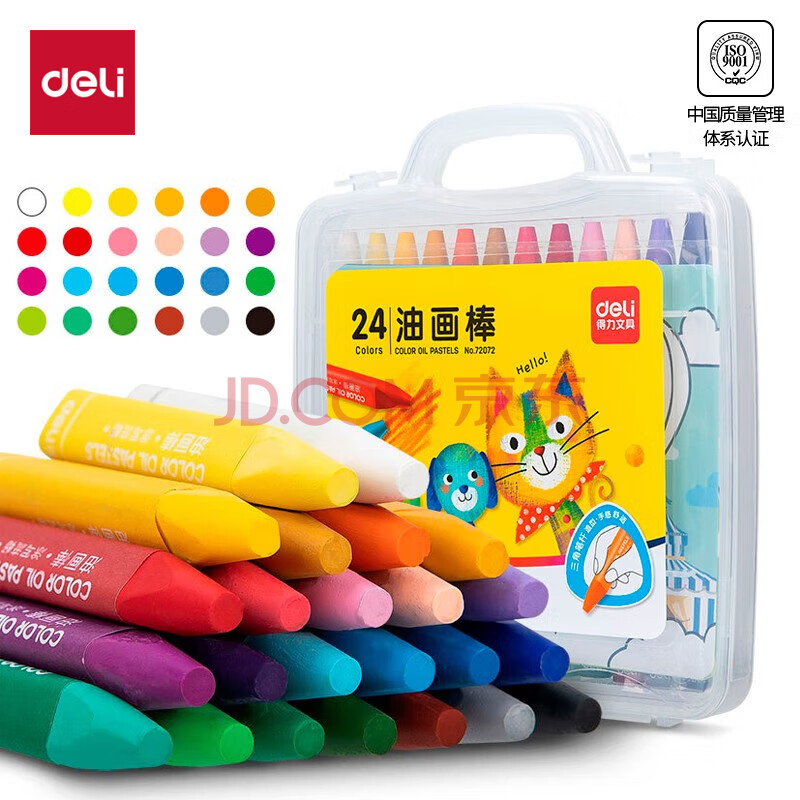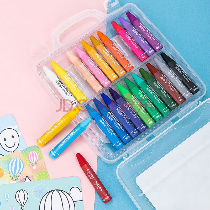 商品相册:得力(deli)24色学生三角杆顺滑丝滑油画棒儿童蜡笔绘画笔涂鸦易握(内含5张填色卡)第