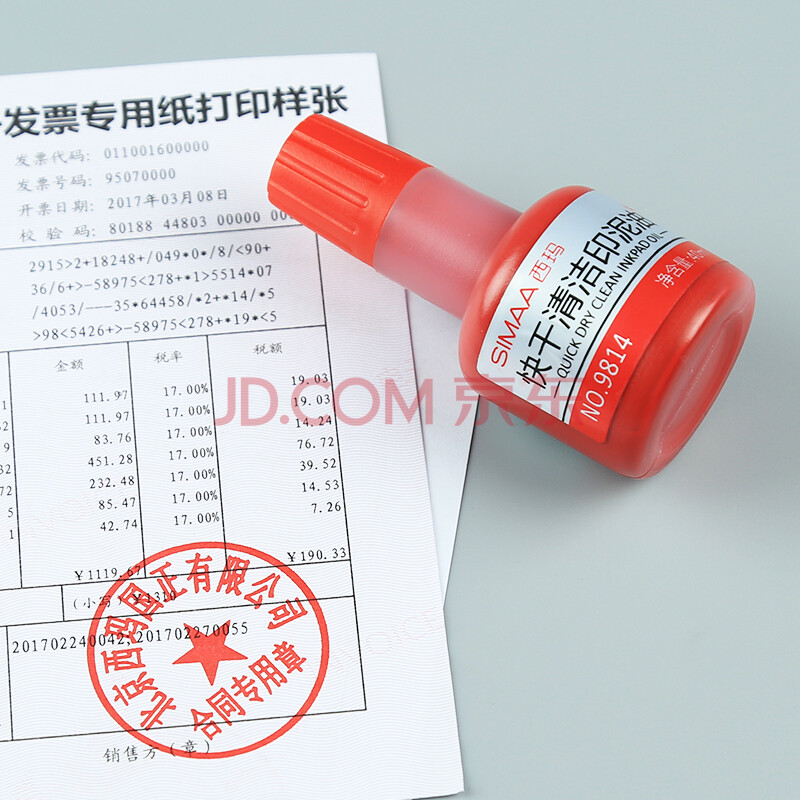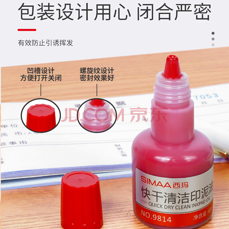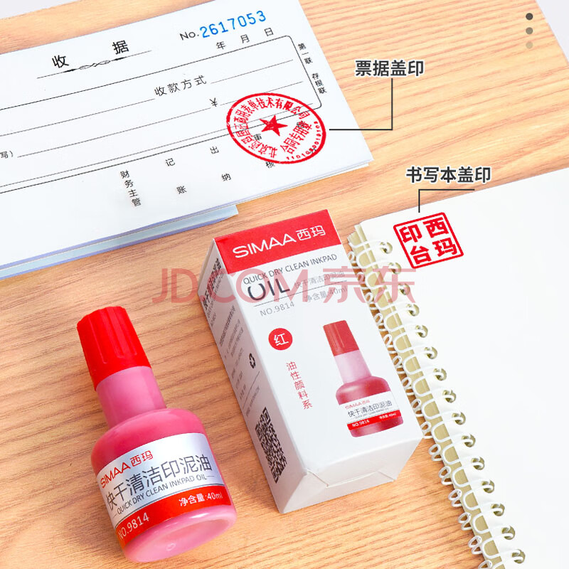 商品相册:西玛(SIMAA)快干清洁印泥油红色 印油印泥 40ml财务印章 办公用品 9814第1张/共7