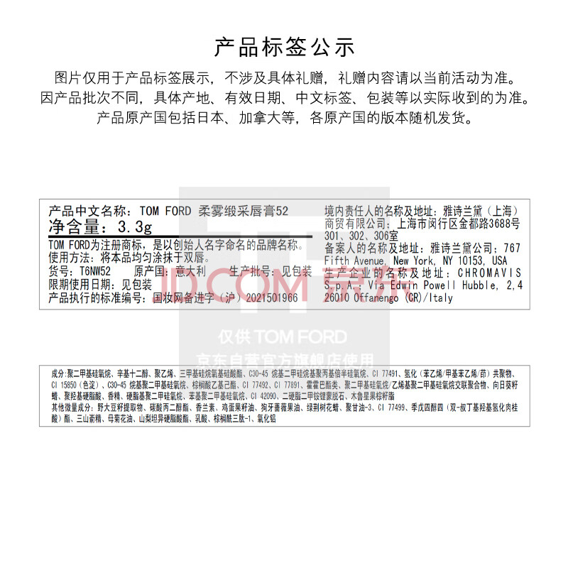 商品相册:TOM FORD细黑管TF口红52丝缎哑光裸玫瑰 唇膏化妆品生日礼物女送女友第