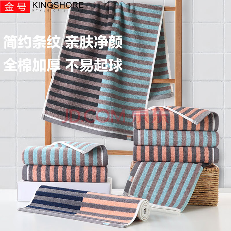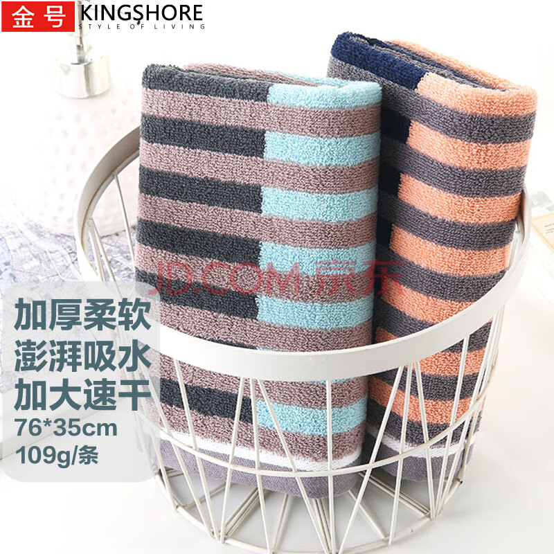 商品相册:金号纯棉毛巾2条装 加大加厚柔软强吸水面巾 红/绿 76*35cm 109g/条第