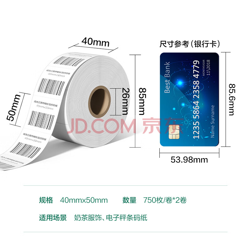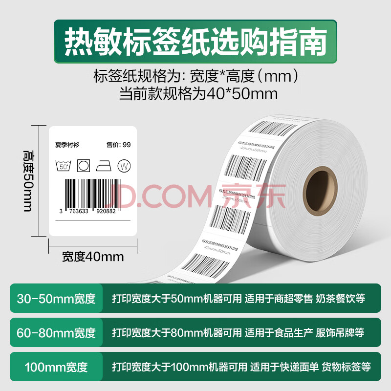 商品相册:得力40*50mm 750张*2卷 珊瑚海三防热敏标签纸 奶茶服饰不干胶打印纸 12009【适配3寸标签机720C等】第