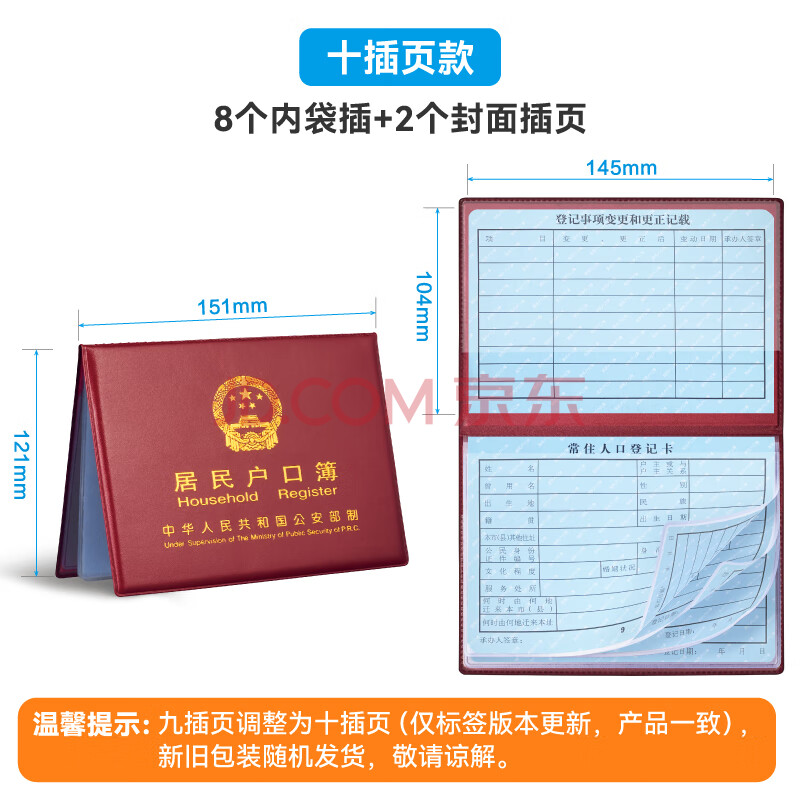商品相册:DSB(迪士比)户口簿户口本保护套10十插页通用加厚居民户口本保护套外皮证件外壳枣红色第