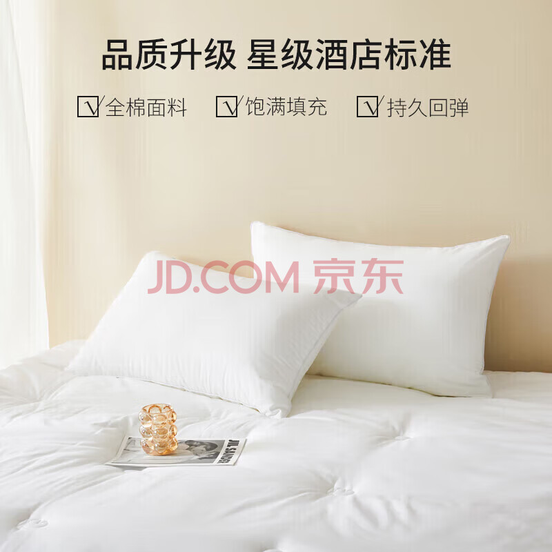 商品相册:源生活 纤维枕芯 星级酒店枕头颈椎枕 全棉面料1000g中枕 一对装48*74cm第
