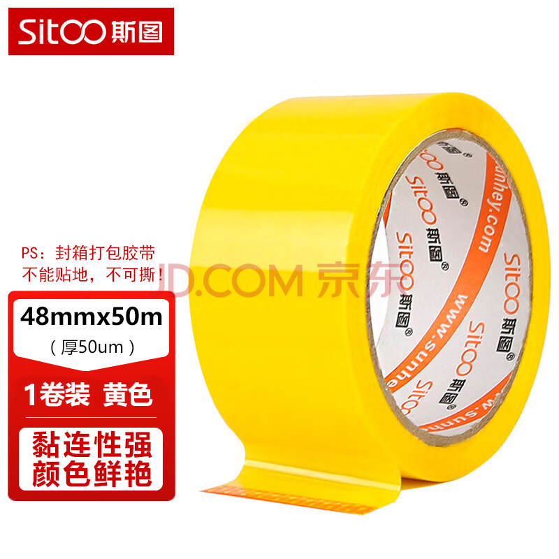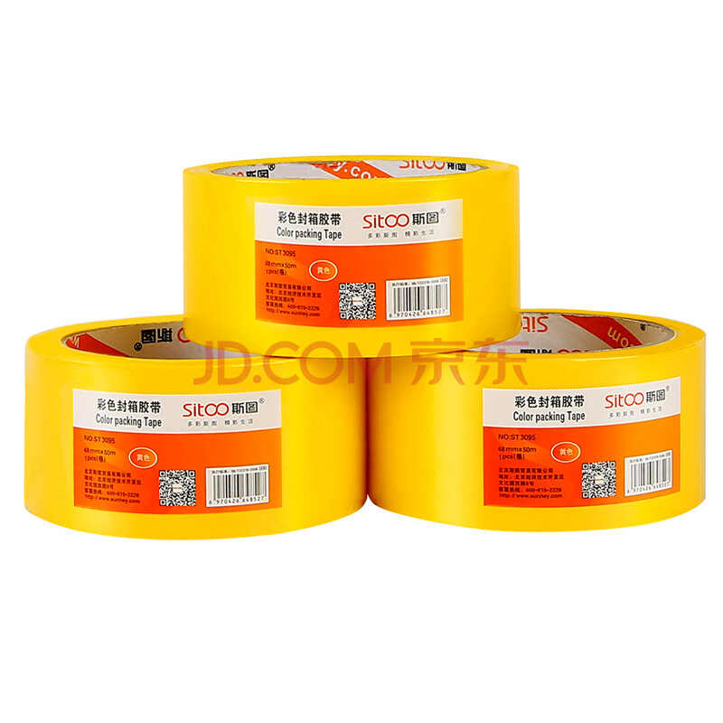 商品相册:斯图sitoo 彩色胶带 标识分类胶带封箱胶带打包胶带快递胶带透明胶带物流 黄色 48mm*50m 1卷装第