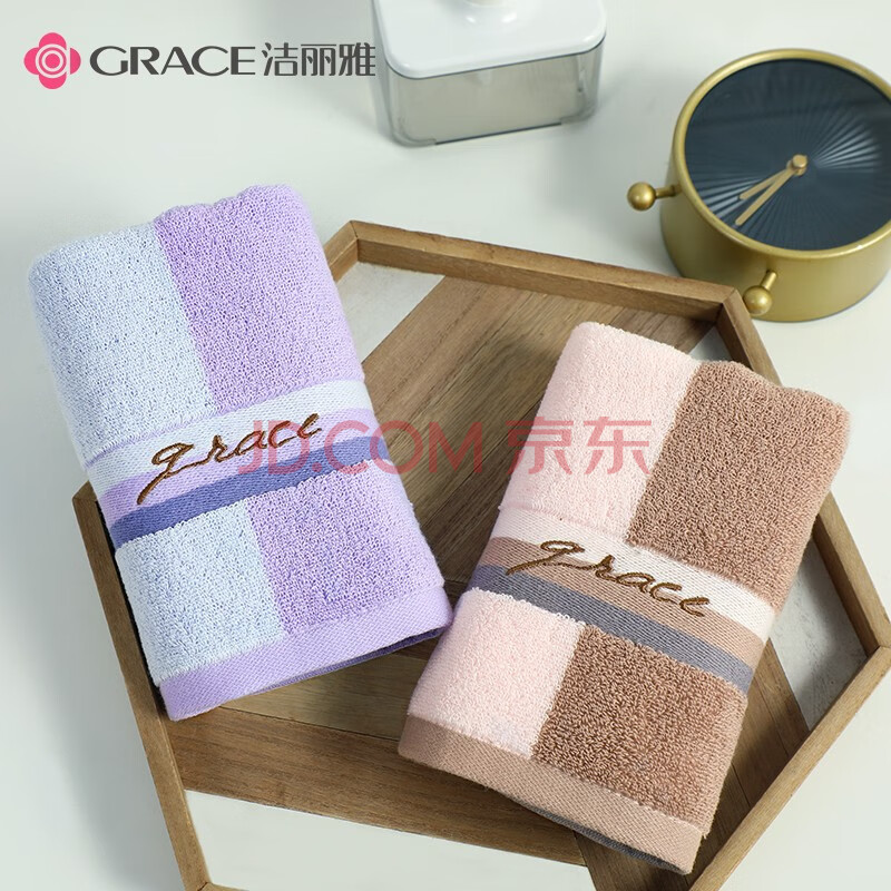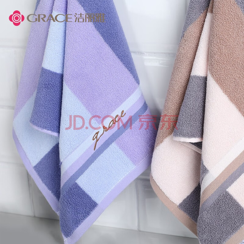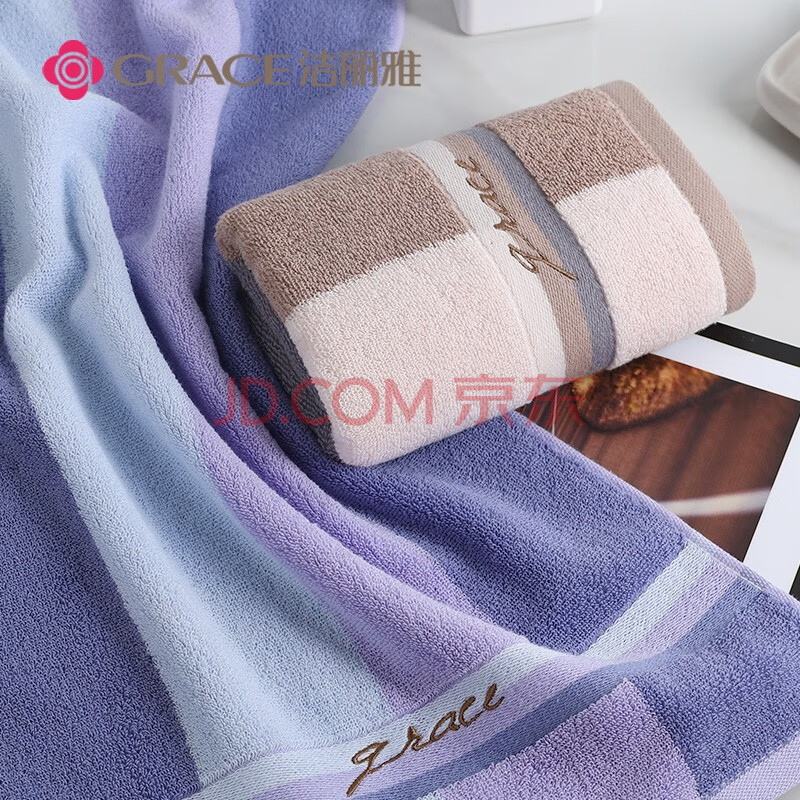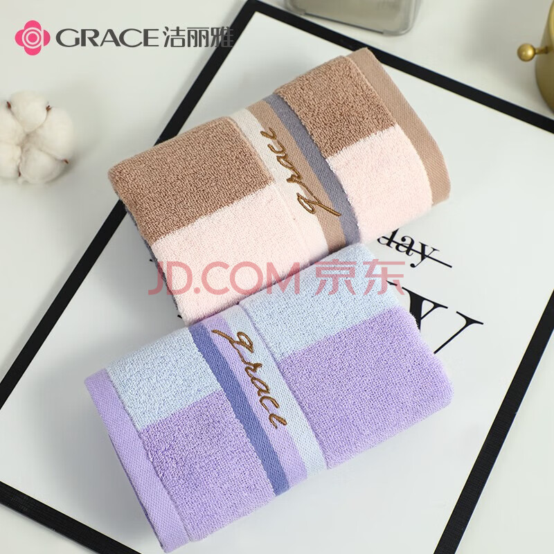 商品相册:洁丽雅(Grace)A类长绒棉毛巾2条装加厚抗菌柔软强吸水洗澡洗脸加大面巾 110g/条第