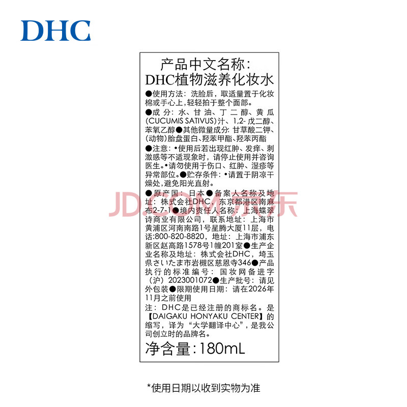 商品相册:DHC植物滋养化妆水180ml 补水保湿深层滋润细腻湿敷水柔肤水干燥肌第