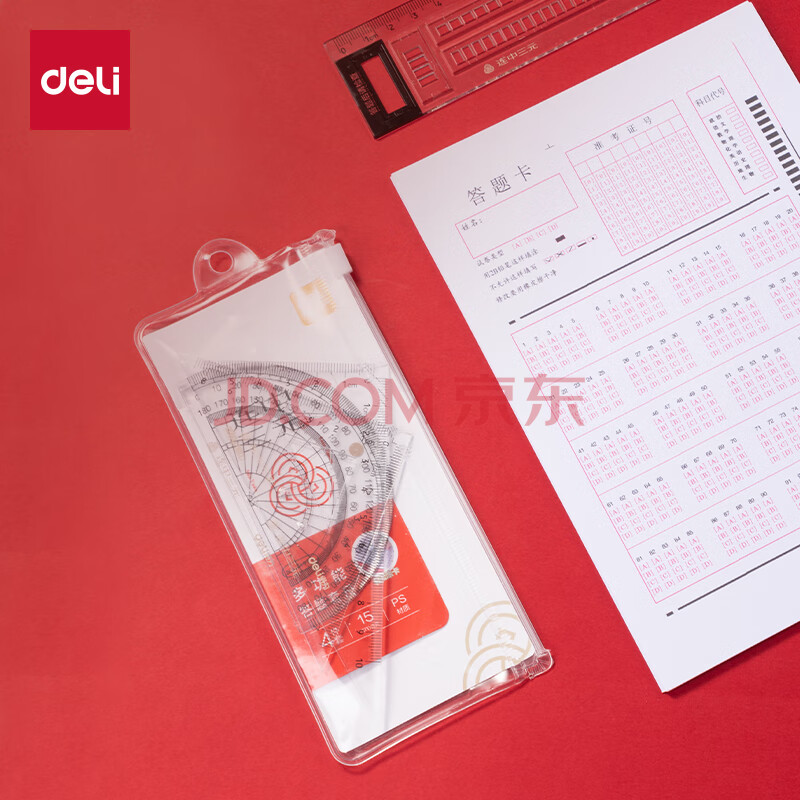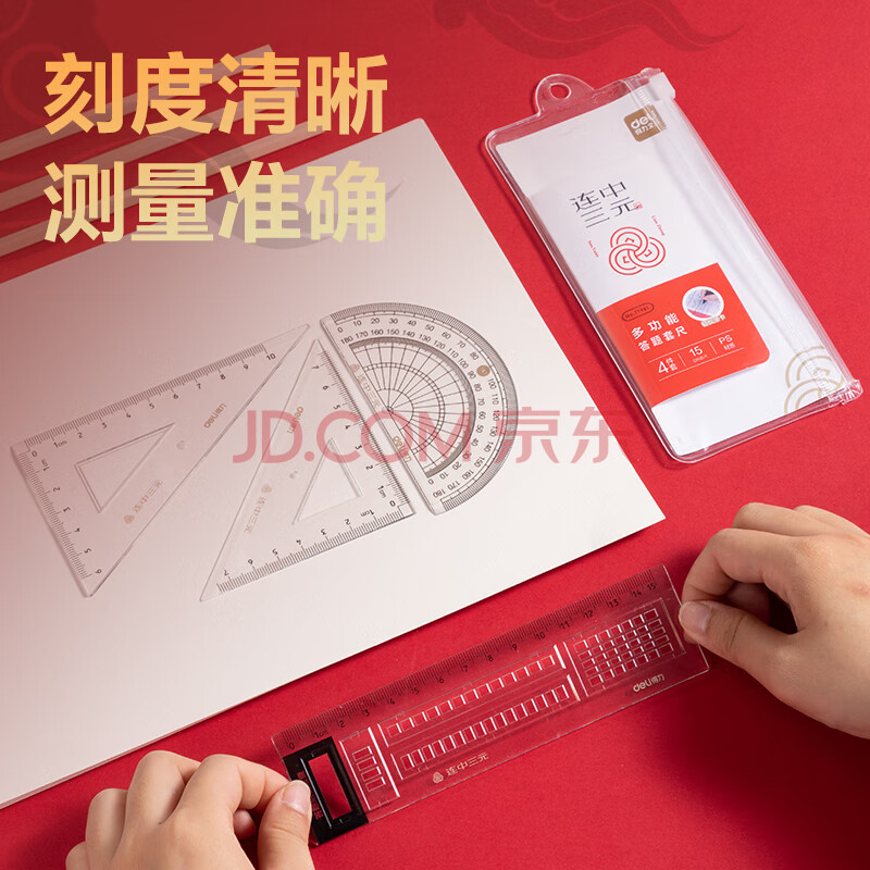 商品相册:得力(deli)学生考研高考中考尺(直尺+三角尺*2+量角器)尺子4件套绘图套尺子第