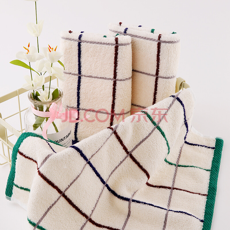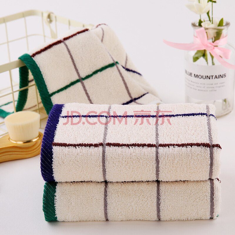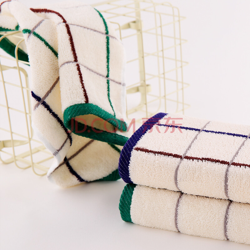 商品相册:金号 毛巾家纺 纯棉方格吸水方巾2条装 蓝/绿 34*33cm第