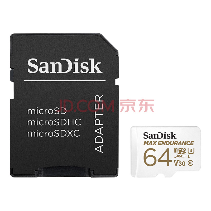 商品相册:闪迪(SanDisk)64GB TF(MicroSD)内存卡 4K V30 U3 适用于家庭监控及行车记录仪内存卡 坚固耐用 更久录制时长第
