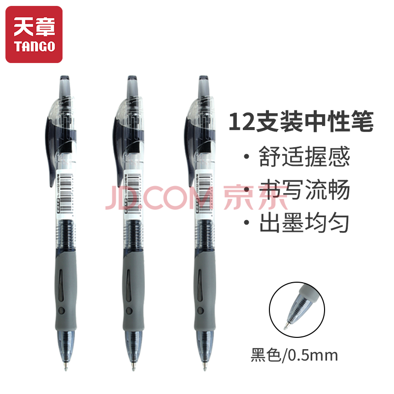 商品相册:天章 (TANGO)新绿天章 9513 顺滑速干中性笔按动签字笔办公文具 0.5子弹头黑色12支装第