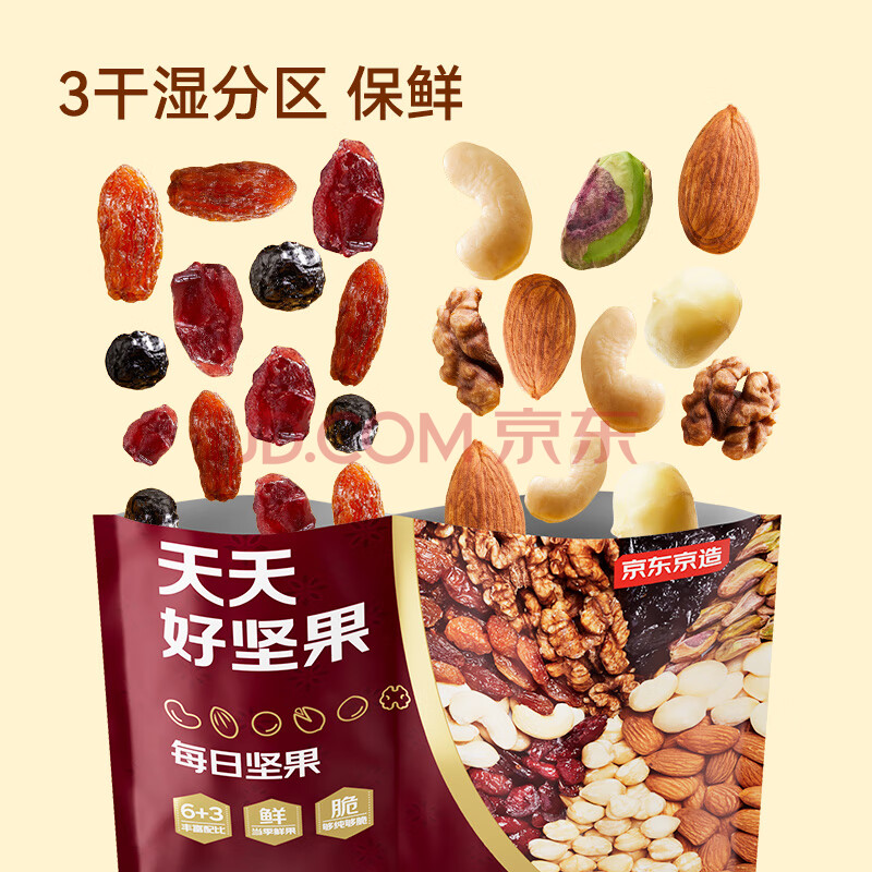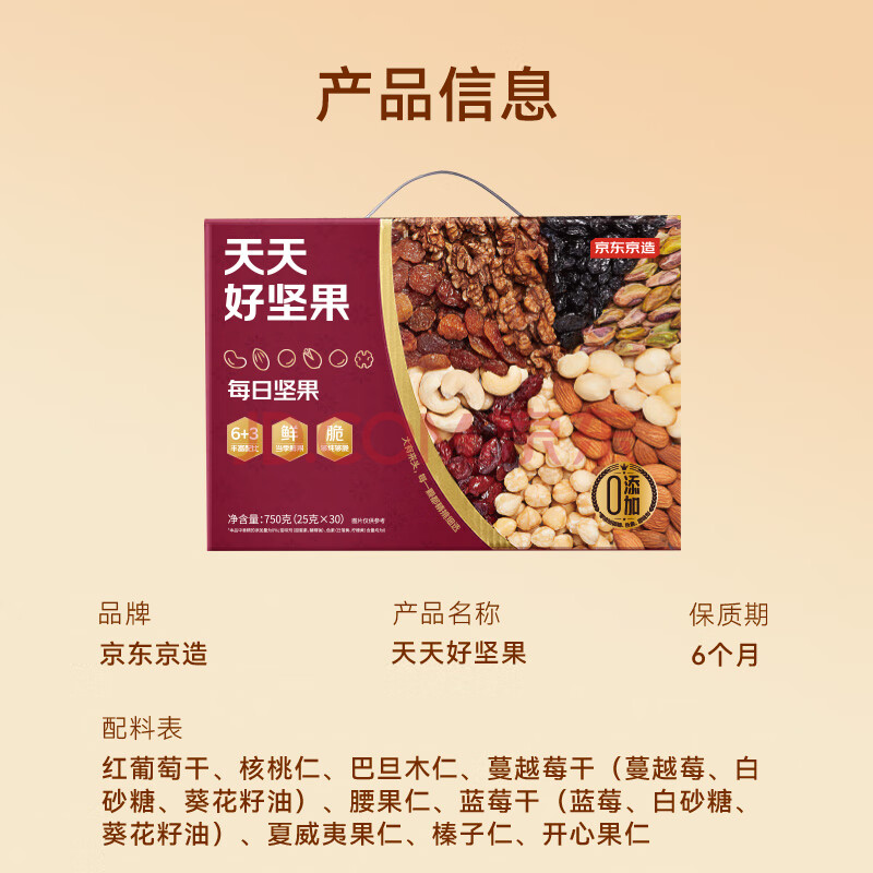 商品相册:京东京造鲜来多 天天好坚果750g(30小袋)9款每日坚果果干坚果礼盒送礼第