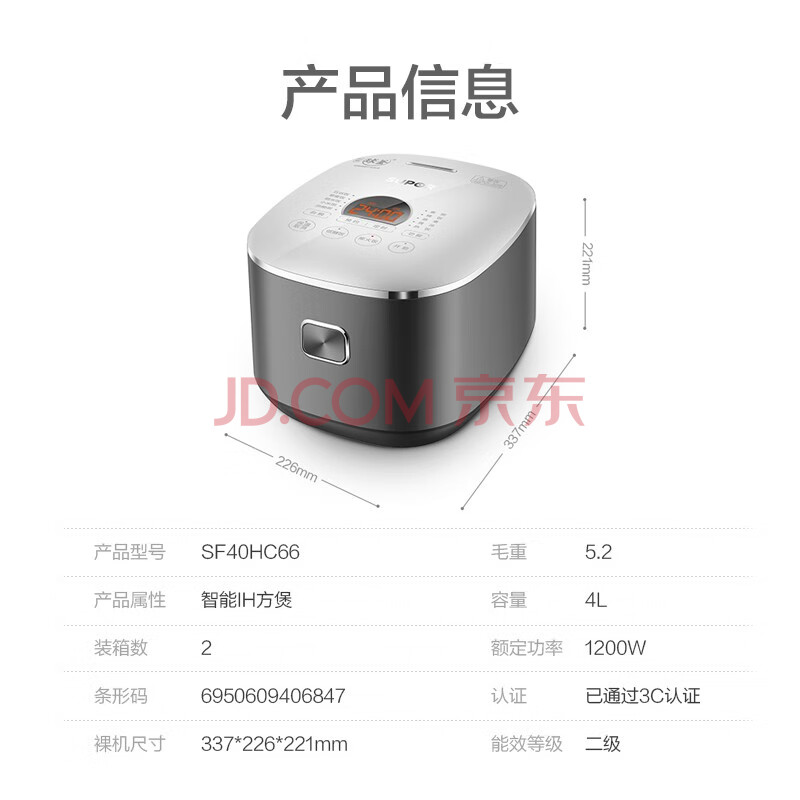 商品相册:苏泊尔(SUPOR)ZMD安心系列 家用4L升多功能球釜内胆预约柴火饭智能电饭煲SF40HC66第