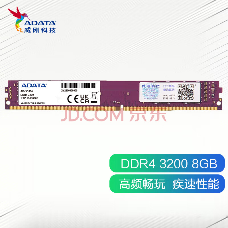 商品相册:威刚(ADATA)8GB DDR4 3200 台式机内存条 万紫千红(宽窄版本随机发货)第