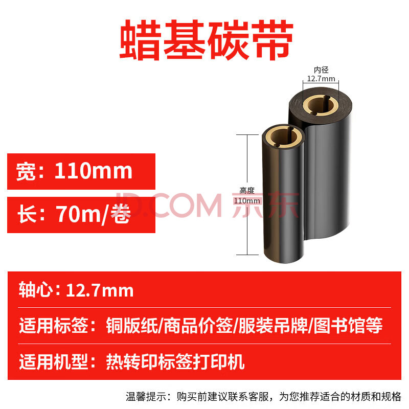 商品相册:e代蜡基碳带110mm*70m双轴2支装 适用斑马gk888t/zd888t条码打印机机热转印标签机碳带卷第