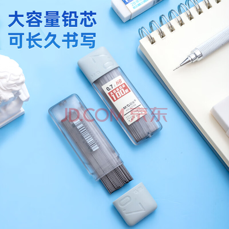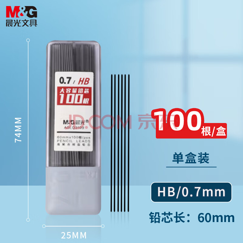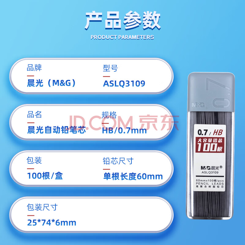 商品相册:晨光(M&G)文具HB/0.7mm自动铅笔替芯 树脂铅芯 考试铅笔芯 100根/盒 单盒装ASLQ3109考试必备第