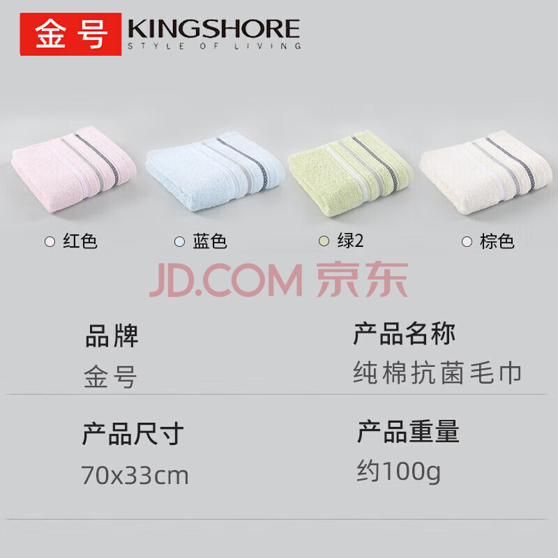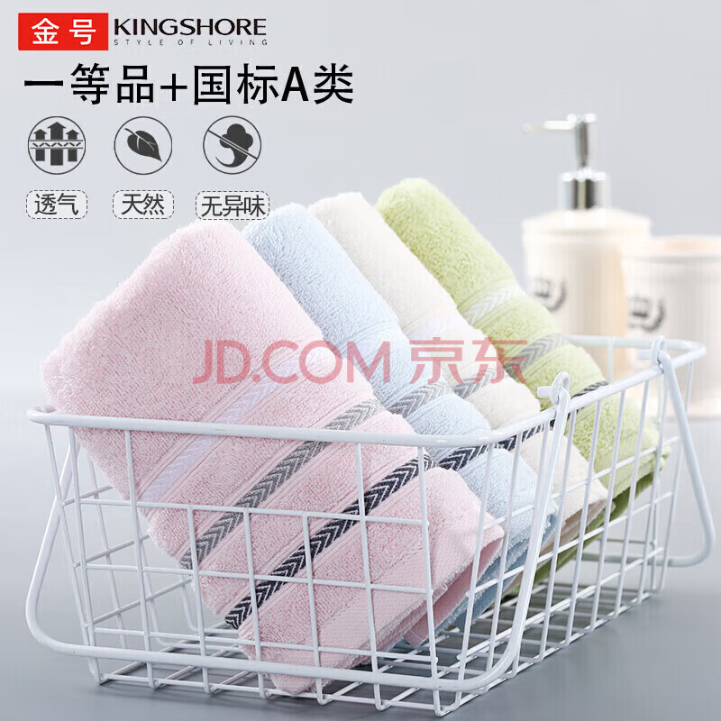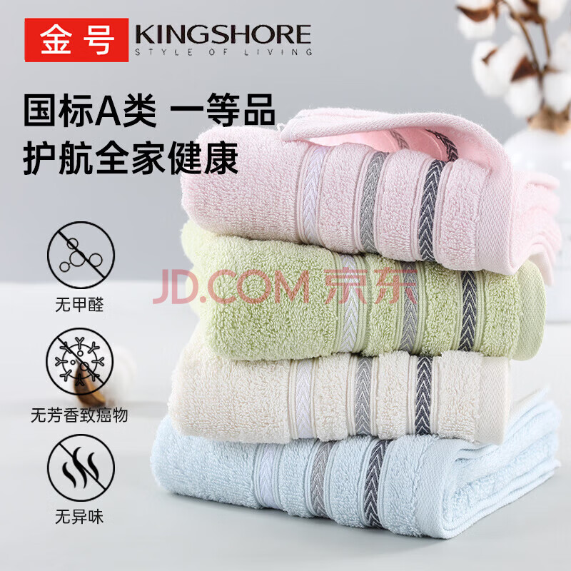 商品相册:金号毛巾 3A抗菌A类标准新疆纯棉素色加厚吸水洗脸巾4条100g/33*70cm第