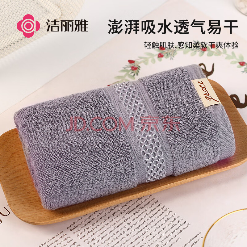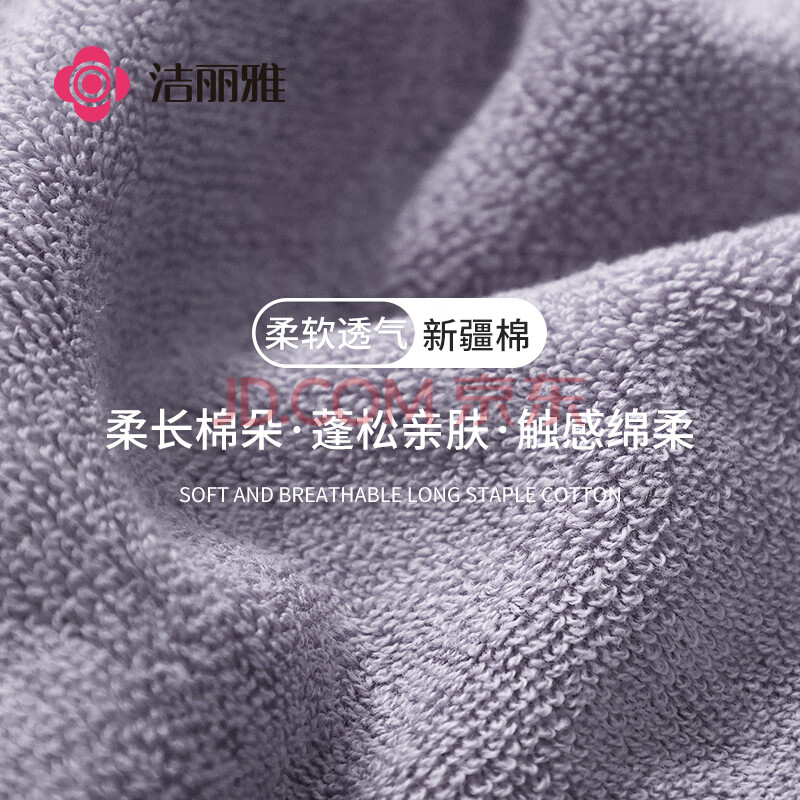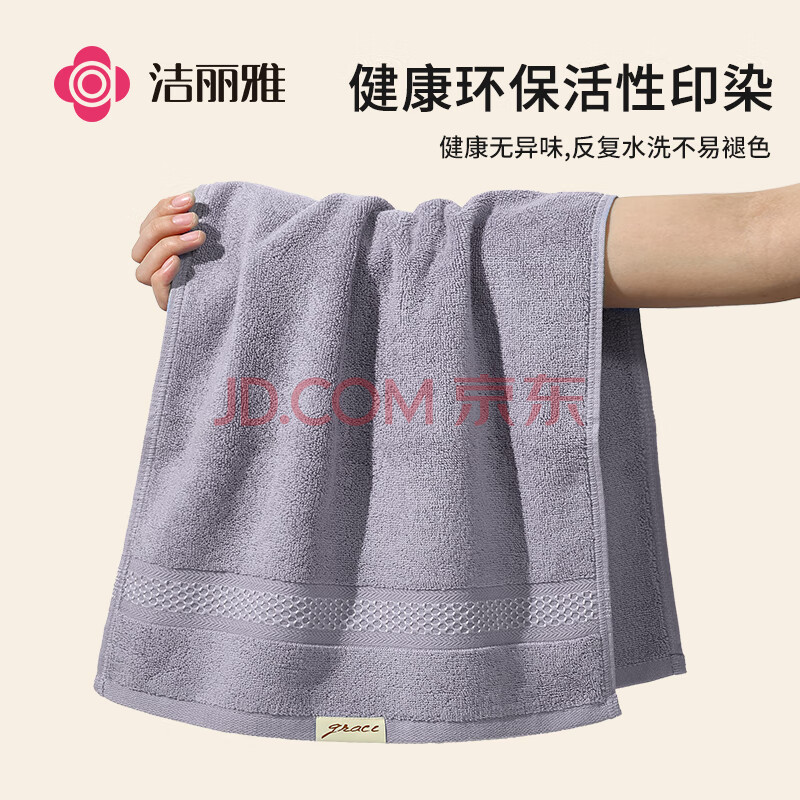 商品相册:洁丽雅(Grace)A类纯棉毛巾 新疆长绒棉吸水加厚素色柔软面巾擦脸巾 灰 独立包装第