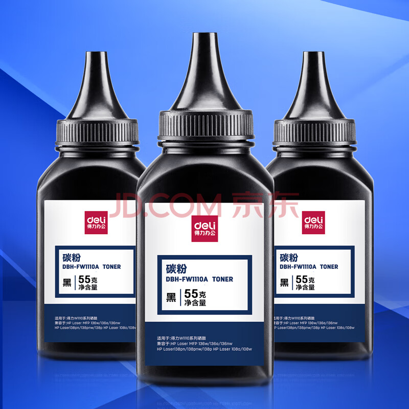 商品相册:得力(deli)110a硒鼓碳粉 黑色瓶装适用惠普136w硒鼓 hp 108a 108w 136a 136w 136nw 138p/pn/pnw第