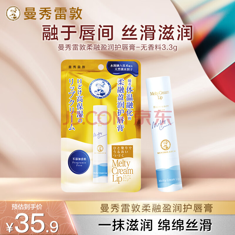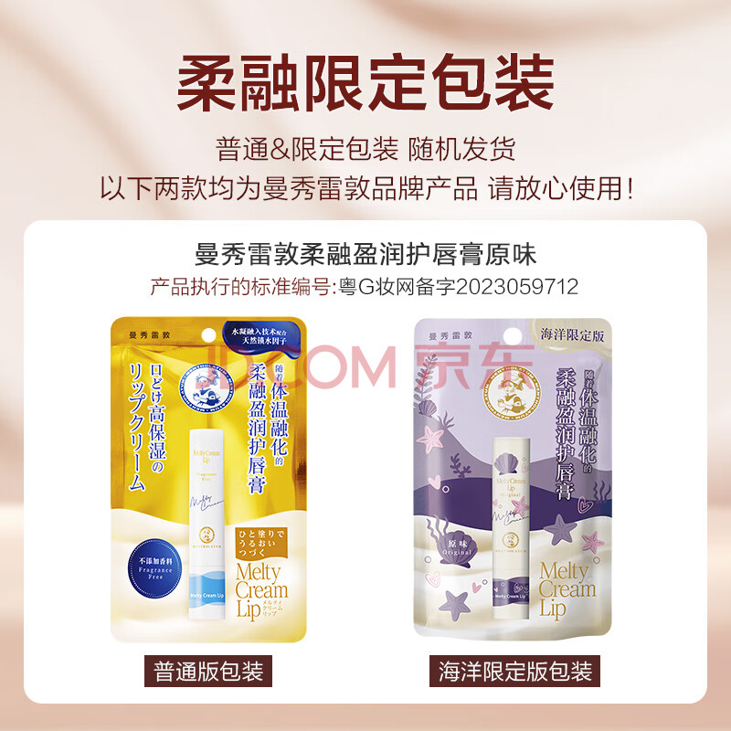 商品相册:曼秀雷敦柔融盈润润唇膏男女保湿滋润防干裂原味3.3g两款包装随机发货第