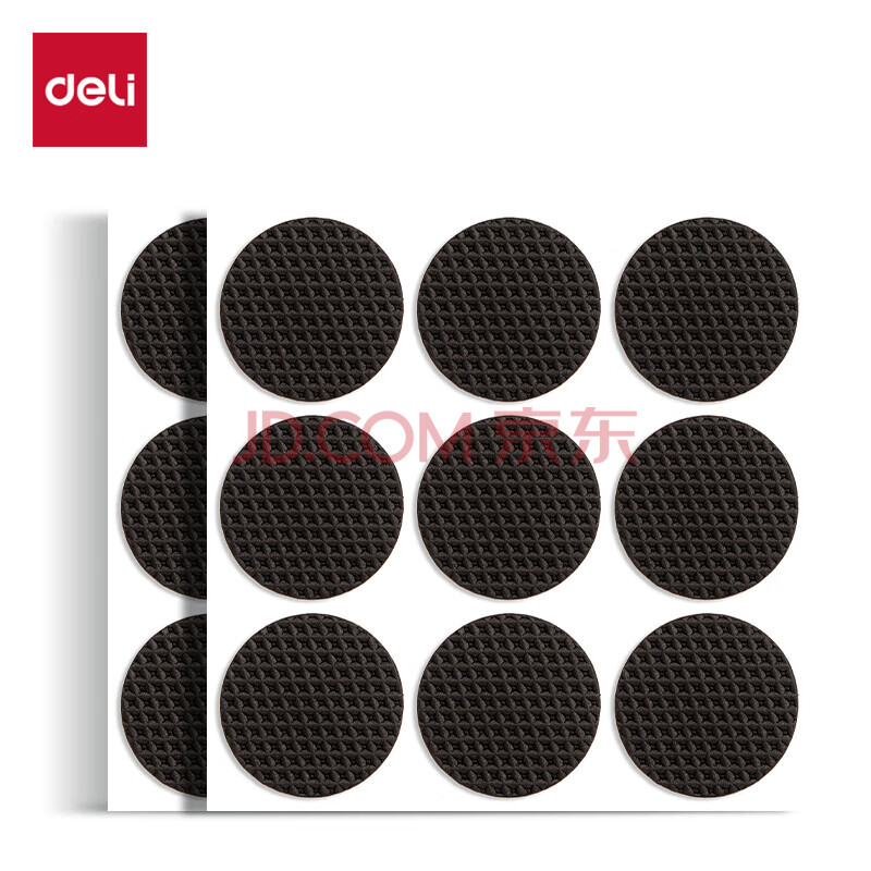 商品相册:得力(deli)胶带垫桌椅脚垫 EVA自粘防滑保护垫 多功能家居降噪耐磨防刮 圆形18片装(φ2.8cm*4mm) 30480第