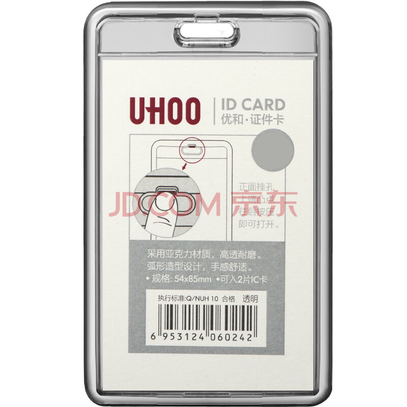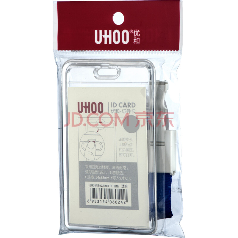 商品相册:优和(UHOO)亚克力证件卡套 竖式 1个卡套 1根挂绳 证件套工作证员工牌胸卡 透明 6006第