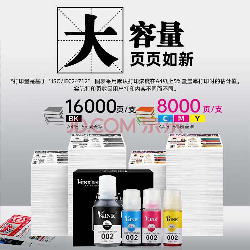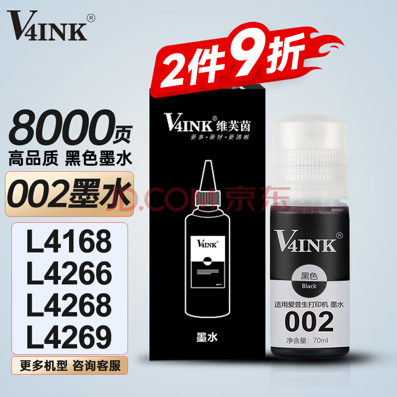 商品相册:V4INK L4168墨水002墨水黑色适用爱普生L4266打印机墨水L4168打印机L4166 L4268 L6198墨水L6268 L4263 L4160第