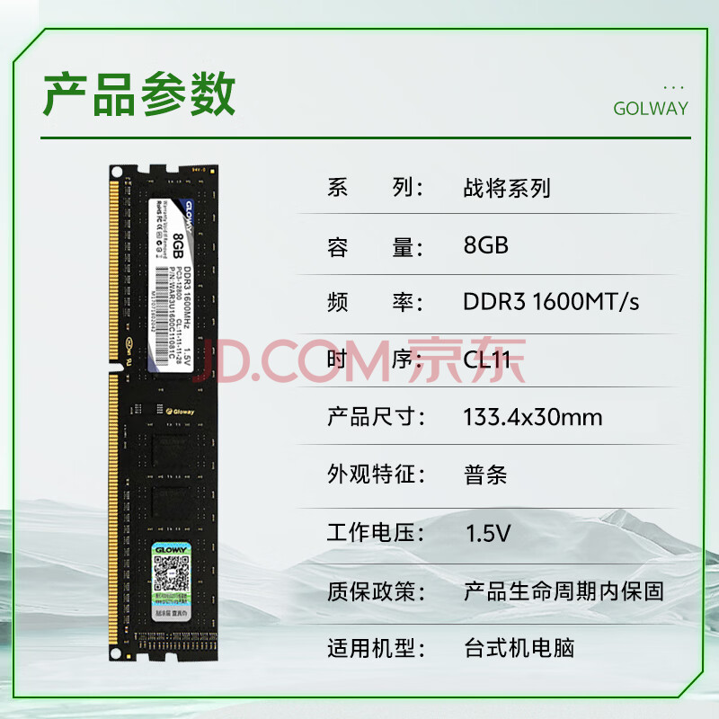 商品相册:光威(Gloway)8GB DDR3 1600 台式机内存条 战将 普条 精选颗粒 CL11第