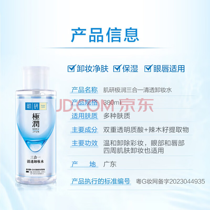 商品相册:肌研极润卸妆水380ml 温和清洁无刺激敏感肌眼唇脸部卸妆京东自营第