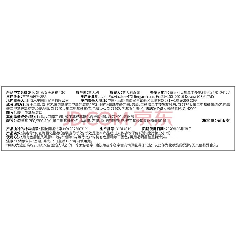 商品相册:KIKO明彩双头唇釉103裸色不易沾杯不易掉色唇膏口红不易沾杯送女友第