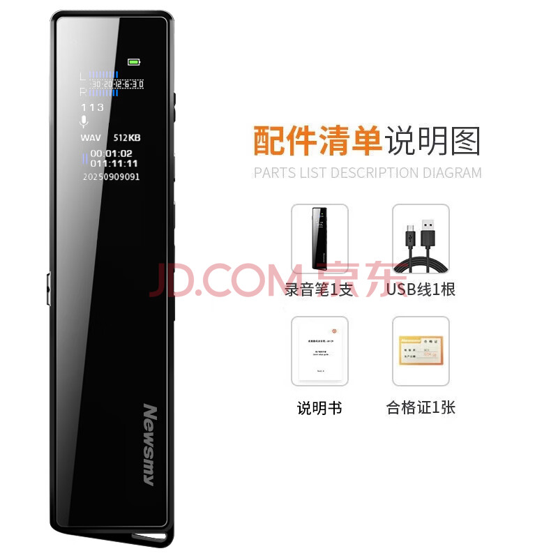 商品相册:纽曼录音笔 V03 16G 专业录音设备 高清降噪 长时录音 学习培训交流 商务办公会议 录音器录音豆 哑黑第