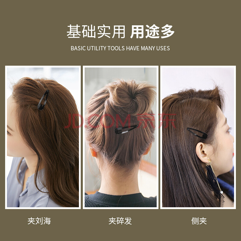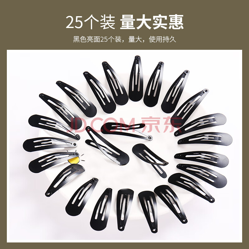 商品相册:优家(UPLUS)黑色水滴发夹边夹小黑夹25个 亮面发夹BB夹碎发夹刘海夹第