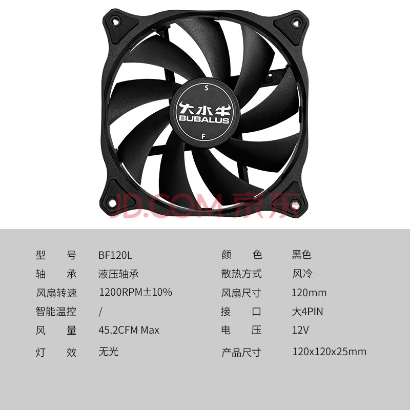 商品相册:大水牛(BUBALUS)BF120L 机箱风扇12CM(无光污染/大4pin可串联/低噪/液压轴承/电脑风冷散热)第