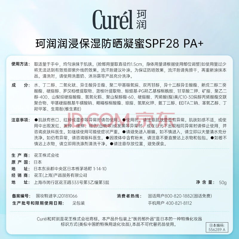 商品相册:珂润(Curel)保湿防晒凝蜜50g SPF28PA+户外出游防晒霜敏感肌男女士进口护肤品第