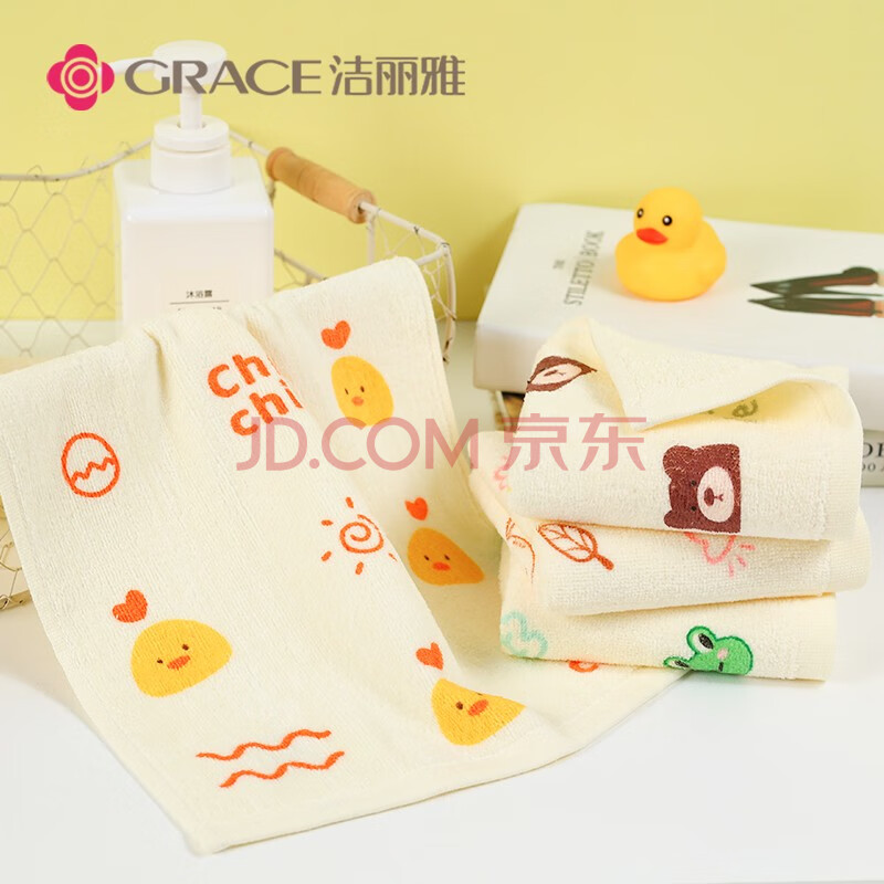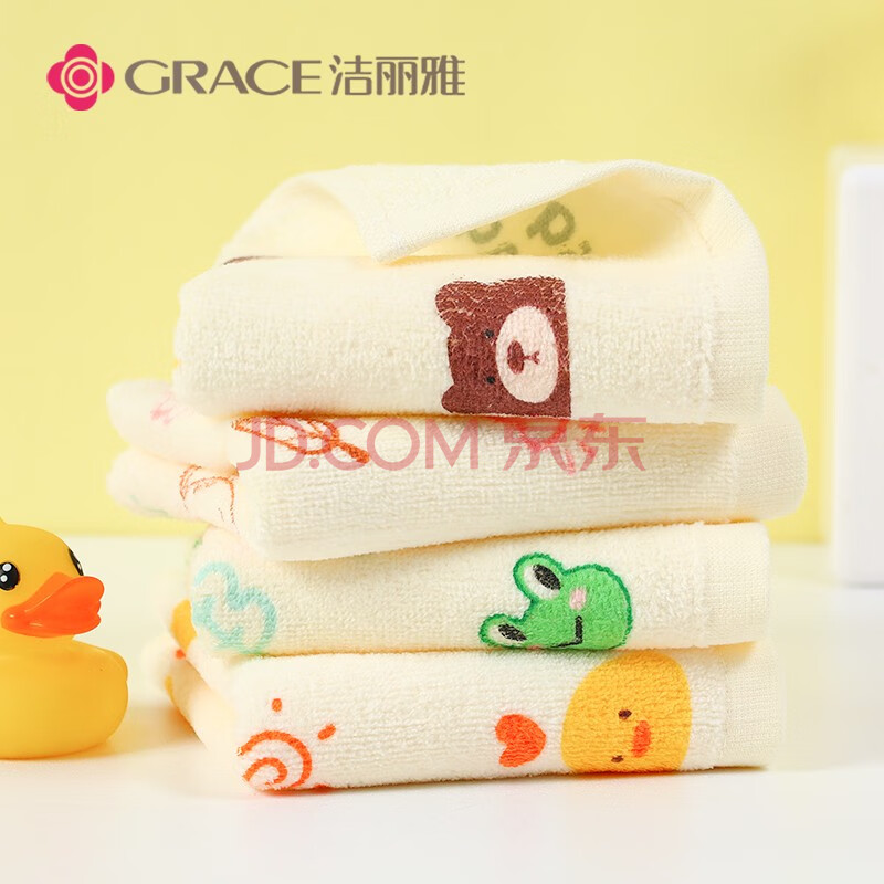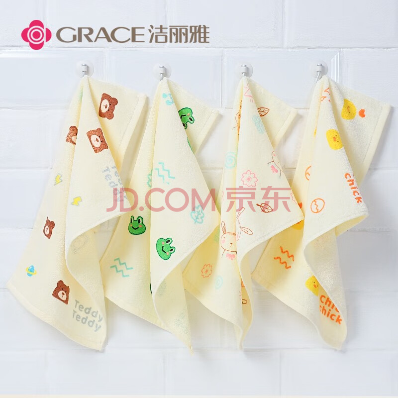 商品相册:洁丽雅(Grace)A类纯棉洗脸可爱家用卡通儿童小毛巾宝宝柔软吸水婴儿童面巾 4条第