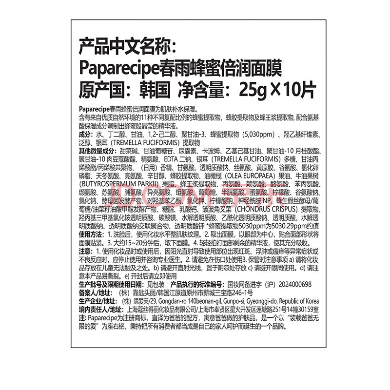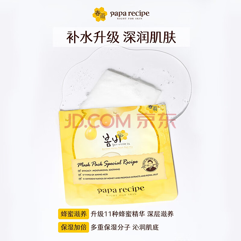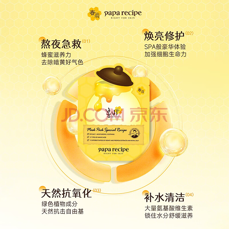 商品相册:春雨(Papa recipe)黄色经典款蜂蜜补水面膜10片 深层保湿舒缓滋养韩国送女朋友礼物第