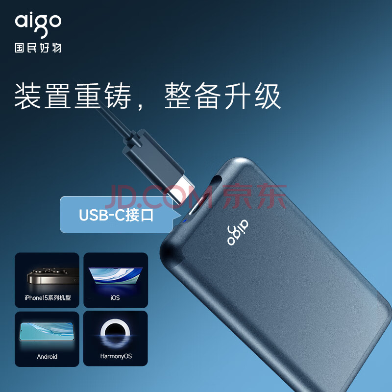 商品相册:爱国者(aigo)1TB Type-c移动硬盘 USB3.2 520MB/s 移动固态硬盘 (PSSD) S7 手机直连笔记本电脑外接便携硬盘第