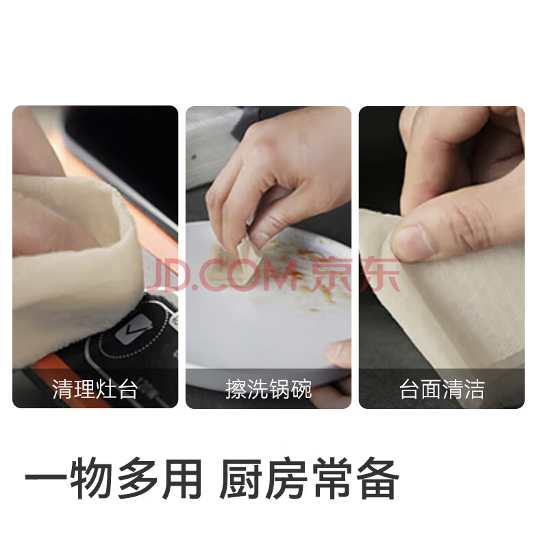 商品相册:京东京造 懒人抹布 本色抑菌 加厚厨房用纸50节*4卷装 吸油一次性洗碗抹布第