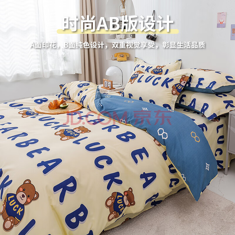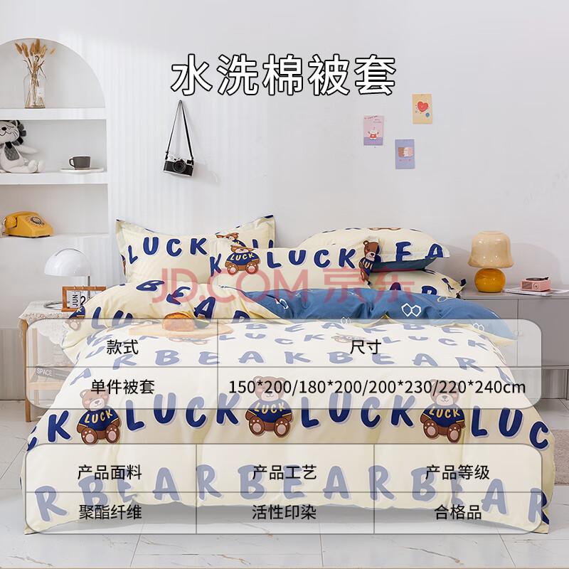 商品相册:艾薇儿童被套单件宿舍单人被罩水洗棉磨毛被套150x200cm 幸运熊第