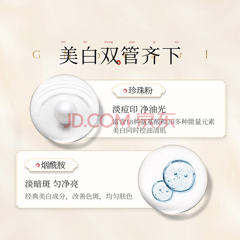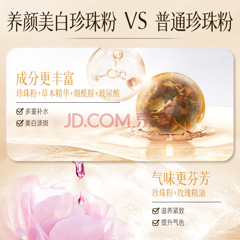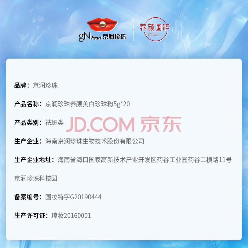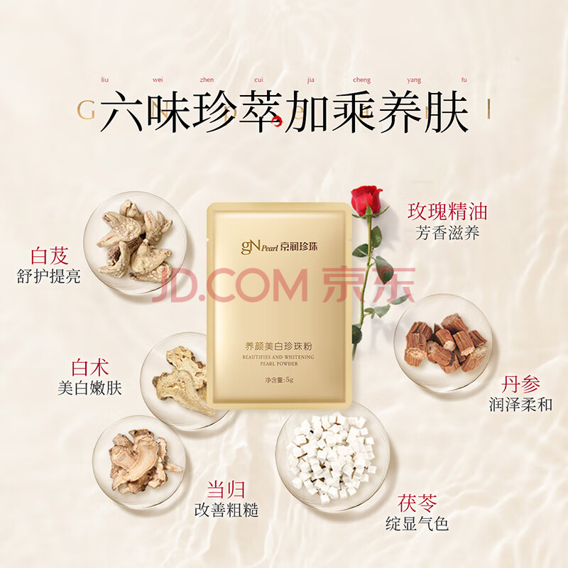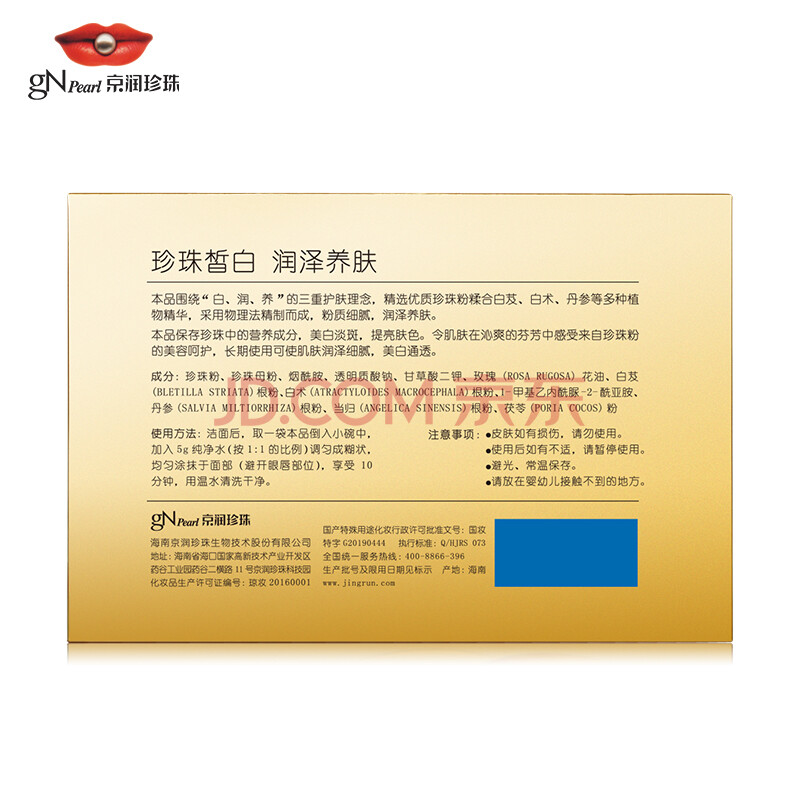 商品相册:京润珍珠养颜美白珍珠粉去黄提亮淡化痘印烟酰胺涂抹面膜5g*20第