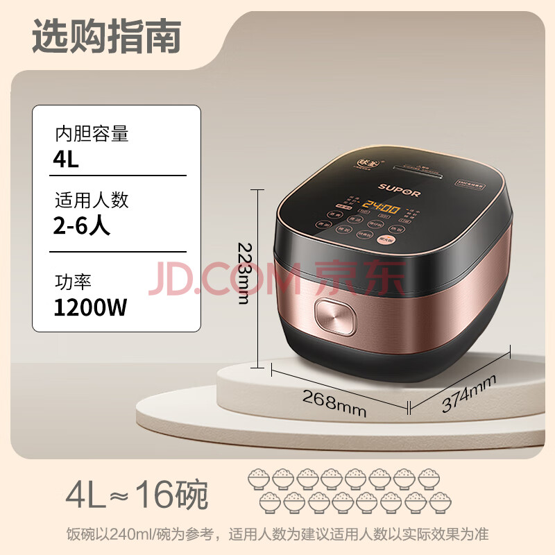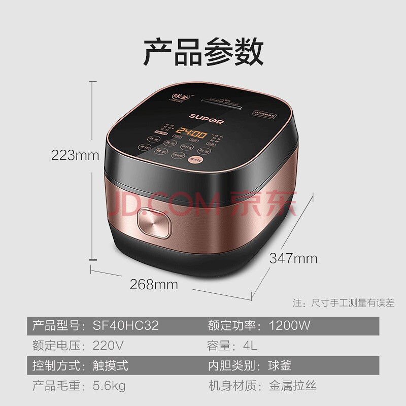 商品相册:苏泊尔 ZMD安心系列 电饭煲锅IH电磁加热智能预约4L电饭煲触摸操控精铁球釜3-4人适用家用电饭煲SF40HC32第