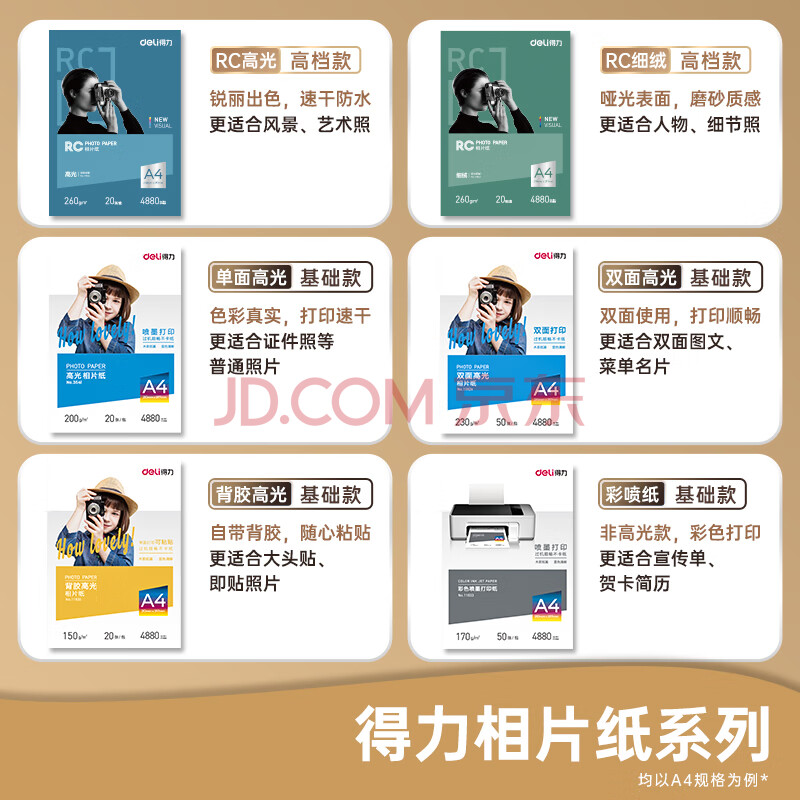 商品相册:得力(deli)6英寸 200g高光面照片纸 相片打印纸 100张/包 11821第1张/共8