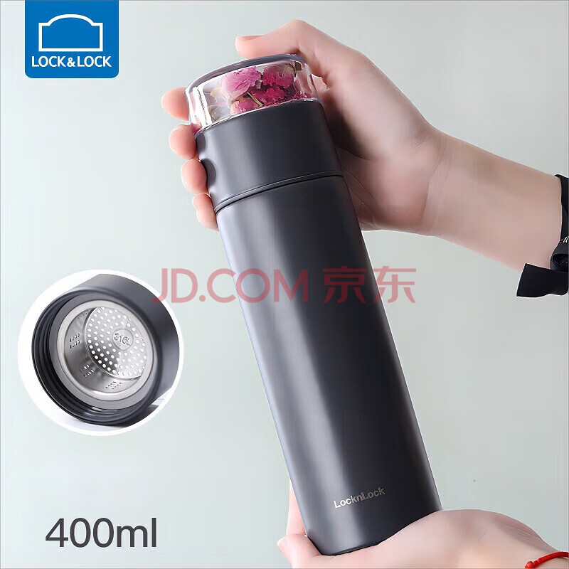 商品相册:乐扣乐扣(LOCK&LOCK)品茗茶水分离不锈钢车载保温杯男女学生水杯400ML灰色LHC4233DGRY第
