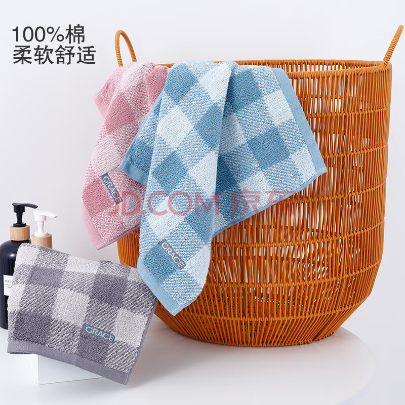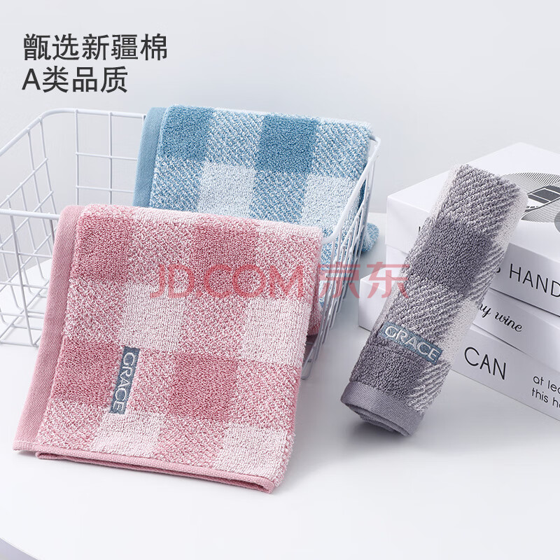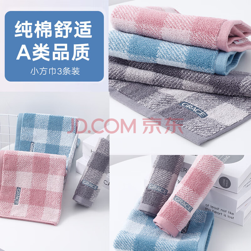 商品相册:洁丽雅(Grace)A类抗菌防螨纯棉方巾3条装柔软舒适加厚吸水小毛巾擦汗巾第