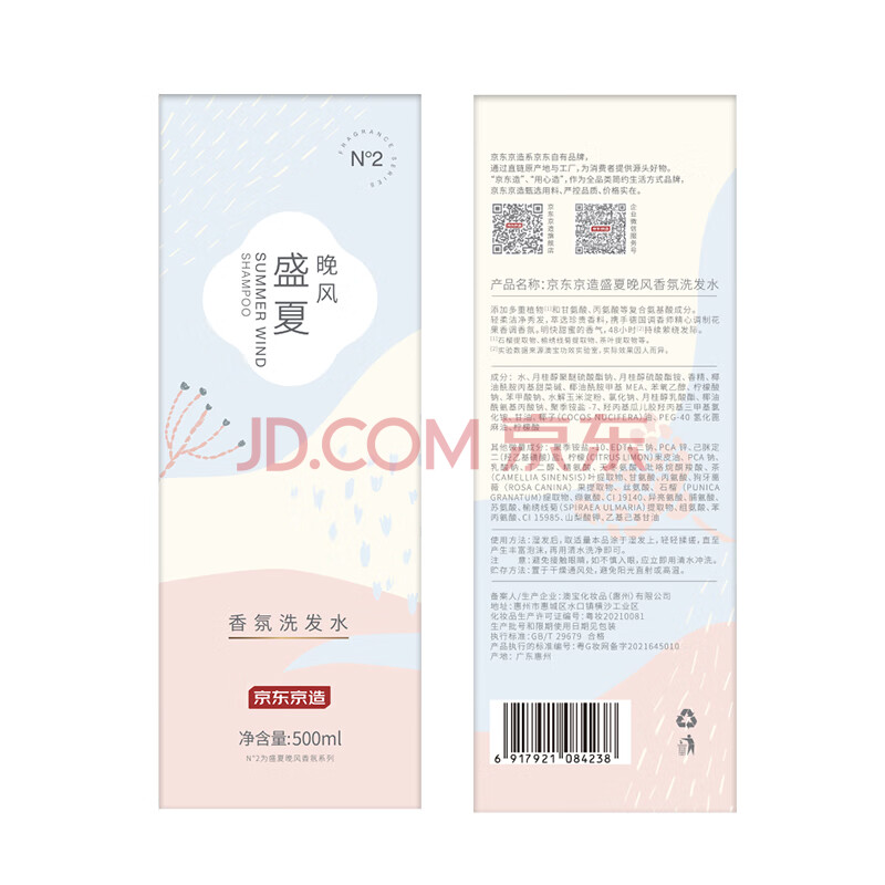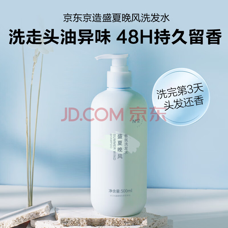 商品相册:京东京造【宿迁同款】盛夏晚风香氛洗发水500ml 持久留香男女放松清洁头皮第