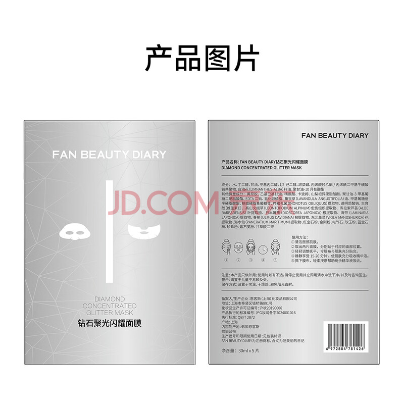 商品相册:FAN BEAUTY DIARY钻石聚光面膜30ml*5片补水保湿 打造钻光肌 fanbeauty 礼物送女生第