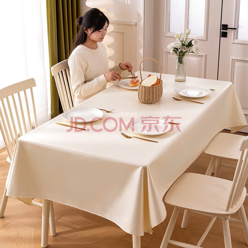 商品相册:钟爱一生桌布防水防油长方形餐桌布酒店宴会布艺台布免洗 奶白色137*220cm第