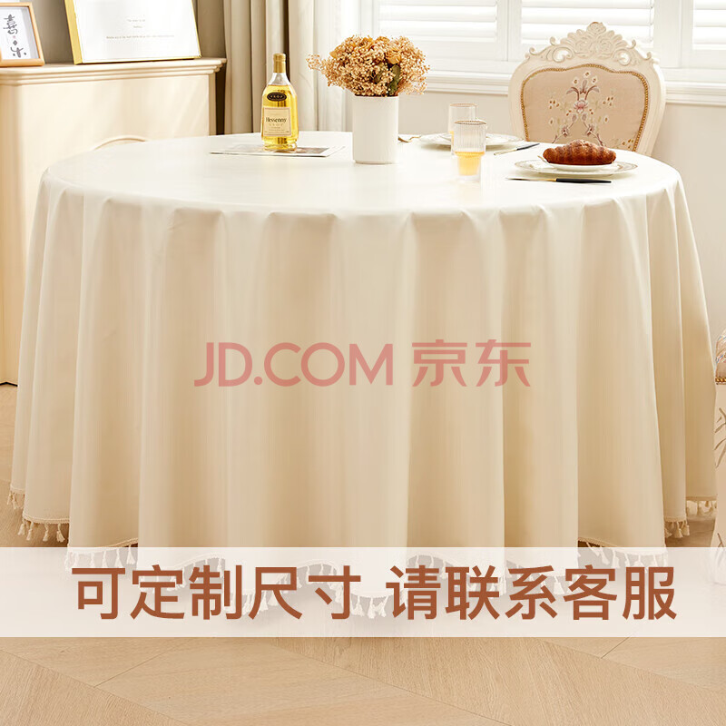 商品相册:钟爱一生圆形桌布防水免洗酒店餐厅食堂大圆桌台布TPU奶白色 圆直径280cm第