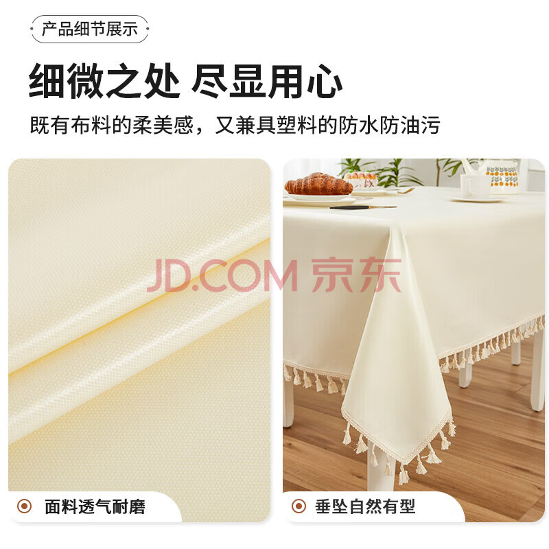 商品相册:钟爱一生桌布防水防油正方形TPU加厚台布方桌小圆桌布 奶白色140*140cm第